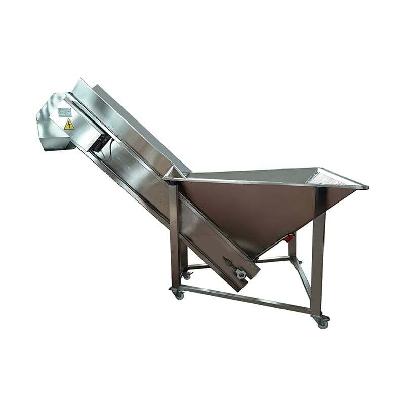 Elevator cu cuve si buncar de incarcare cartofi si alte radacinoase care sunt transportati la masina de depelat